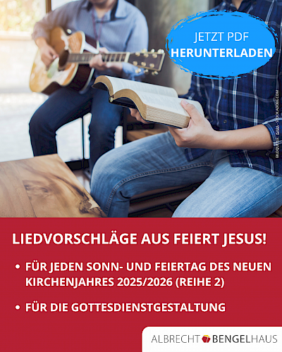 Um die Pfarrerinnen und Pfarrern, Prädikantinnen und Prädikanten sowie Musikteams in ihrer Gottesdienstgestaltung zu unterstützen, haben wir Liedvorschläge aus den Feiert Jesus!-Liederbüchern zu allen Sonn- und Feiertagen der Predigtreihen I und II für das Kirchenjahr 2024/25 und 2025/26 zusammengestellt. Für Rückmeldungen, Ergänzungen und Vorschläge zu dieser Liste sind wir dankbar.